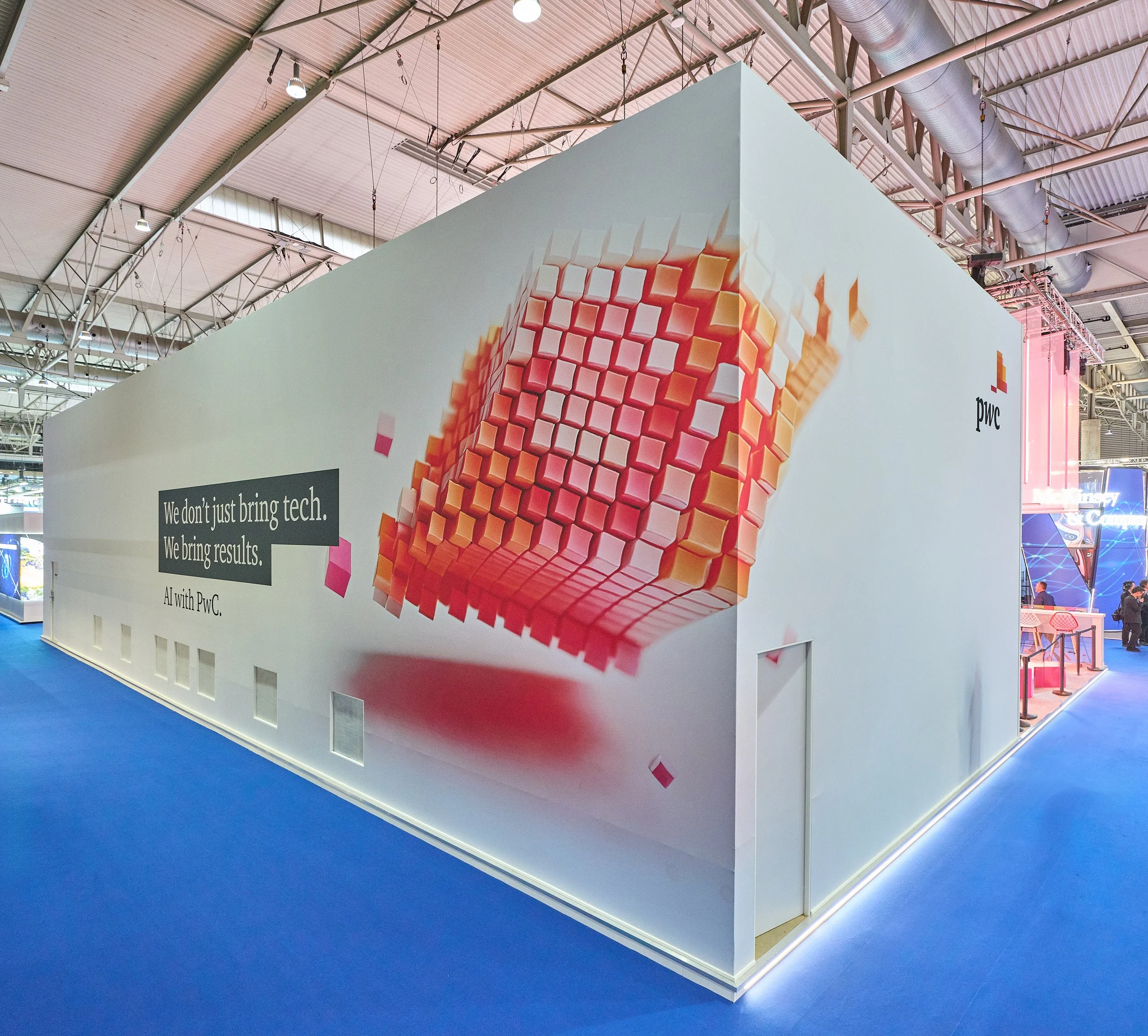 The result was a clean, contemporary space that sparked conversation before attendees even walked through the door, fostered collaboration and knowledge exchange inside, and reinforced PwC's leadership in AI-driven innovation on a global stage.